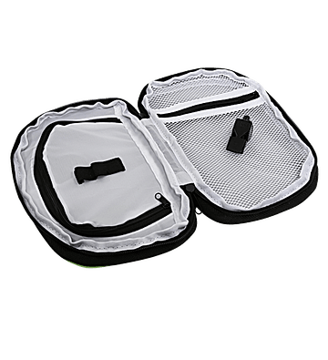 Estuche multicompartimento El interior tiene dos áreas de almacenamiento con cierre; un estilo de malla, un material sólido con trabillas para lápi...