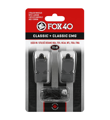 EL KIT INCLUYE: Silbato clásico sin repique (115 dB)Silbato clásico CMG sin repique (115 dB)Cordón separable con logo Fox 40
